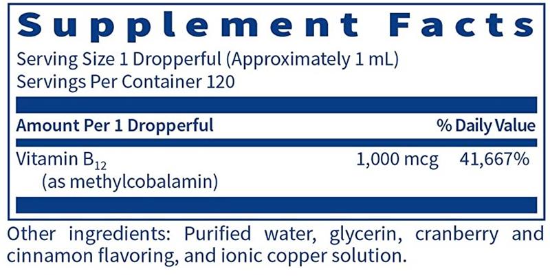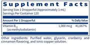 B12 Liquid (Methylcobalamin) provides essential vitamin B12 to support red blood cell function, cardiovascular and neurologic health. B12 is a nutrient needed to support many individuals, particularly those who avoid animal-based ingredients or have decreased levels of intrinsic factor due to increased age, poor diet, and/or certain medications.