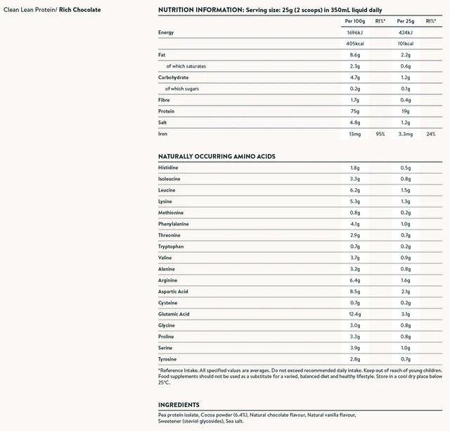 Made from the highest quality European golden peas, Clean Lean Protein is the environmentally friendly choice. Complete with all nine essential amino acids, it is a natural source of iron, tasty and easy to digest.